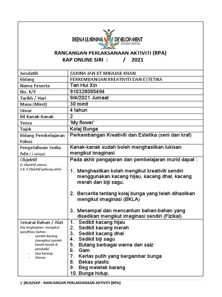 Home unlabelled contoh rpa tema haiwan rpa . Kreativiti dan estetika nama peserta : Persatuan pengasuh berdaftar malaysia ( p. View rpa perkembangan kreativiti dan estetika.docx from economy ecmb113 at tenaga national university, bandar muadzam shah. Rancangan pelaksanaan aktiviti (rpa) siri kap :1/ 2017nama agensi latihan: